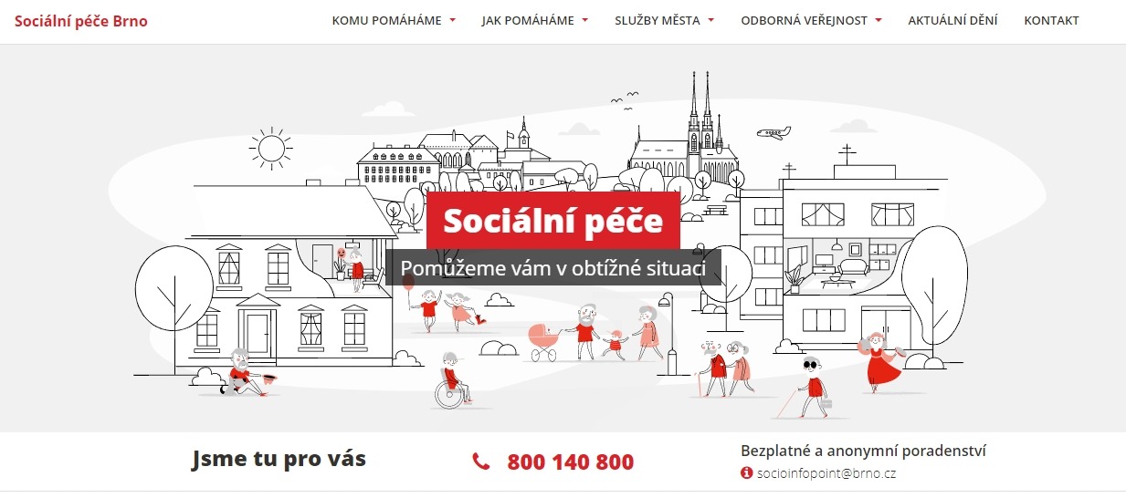 Od konce října mohou Brňané najít ucelené informace o tom, co dělat v náročné životní situaci, na webu sociální péče. Návštěvníci zjistí, jaké sociální služby jsou poskytovány, a zároveň snadno dohledají kontakt. Ti, kteří preferují telefonický kontakt, tam najdou číslo na bezplatnou zelenou linku. Kdo dává přednost osobní návštěvě, velmi rychle zjistí adresu poradny Socio Info Point. A na uživatele internetu tam čekají v přehledné struktuře potřebné informace online.